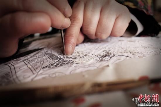 在制作剪纸时,精力必须高度集中,一丝一毫的恍惚都可能让一根胡须或鳞片损毁,一张上好的剪纸也就变成了一张废纸。(资料图)