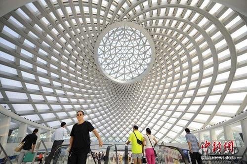 图为2015年9月20日上午,京津城际铁路首趟通往于家堡站的列车平稳抵达,标志着天津滨海新区商务核心区于家堡站正式投用。中新社记者佟郁摄
