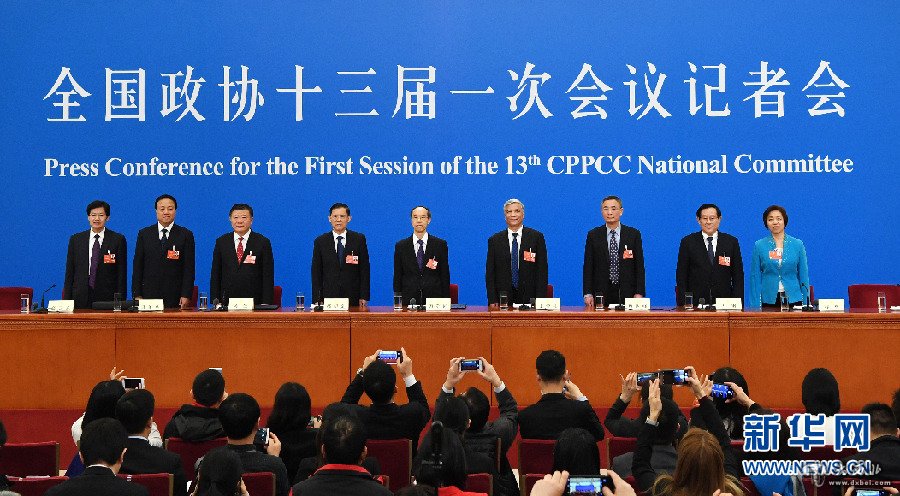 3月6日,全国政协十三届一次会议在北京人民大会堂举行记者会,民主党派中央和全国工商联领导人回答记者提问。 新华社记者 申宏 摄