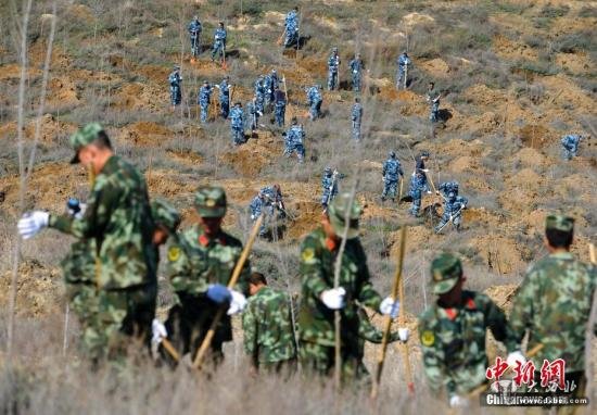 资料图:2017年4月,新疆乌鲁木齐市水磨沟区的雪莲山上,由驻区部队官兵、园林局工作人员及辖区居民等400余人组成的义务植树队伍,在此开展春季植树活动,共栽种树苗3000余棵。中新社记者刘新摄