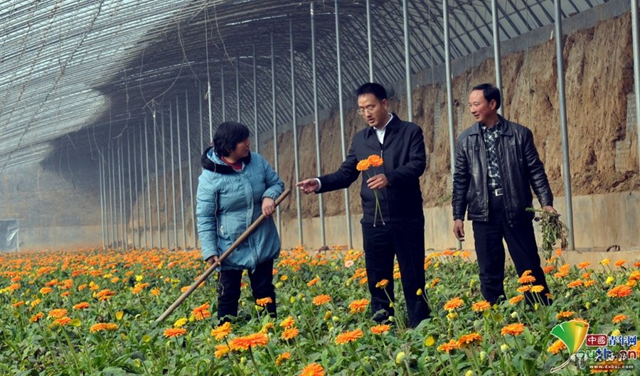 裴春亮帮扶鲜花种植户。本人供图