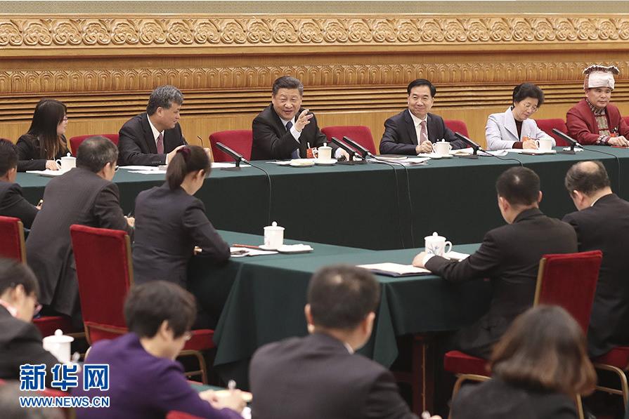 3月7日,中共中央总书记、国家主席、中央军委主席习近平参加十三届全国人大一次会议广东代表团的审议。 新华社发(盛佳鹏 摄)