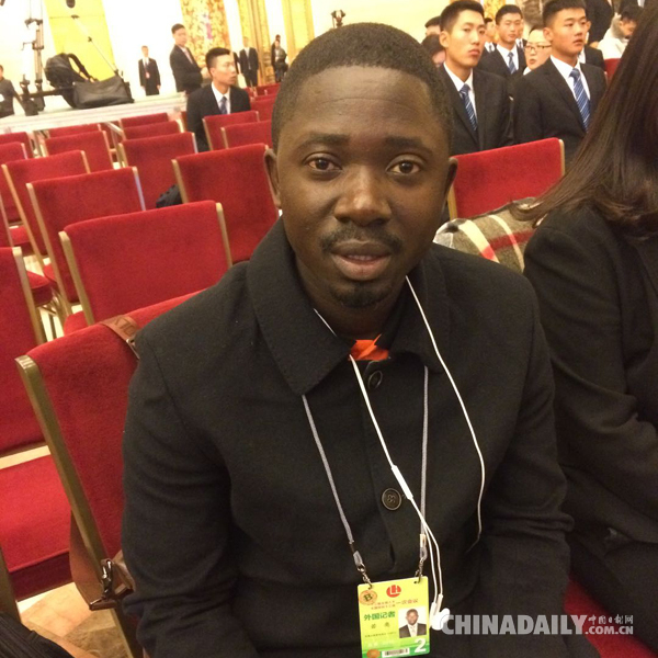 安哥拉国家电视台记者若奥在接受采访。(摄影:中国日报网记者严玉洁)