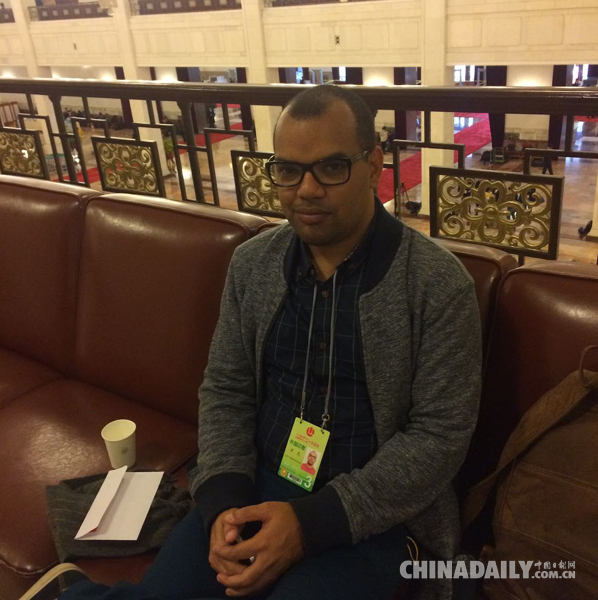 莫桑比克通讯社记者马沙诺在接受采访。(摄影:中国日报网记者严玉洁)