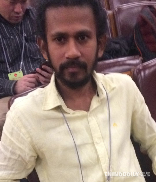 斯里兰卡《周日兰卡之光报》记者维克拉马辛哈在接受采访。(摄影:中国日报网记者严玉洁)