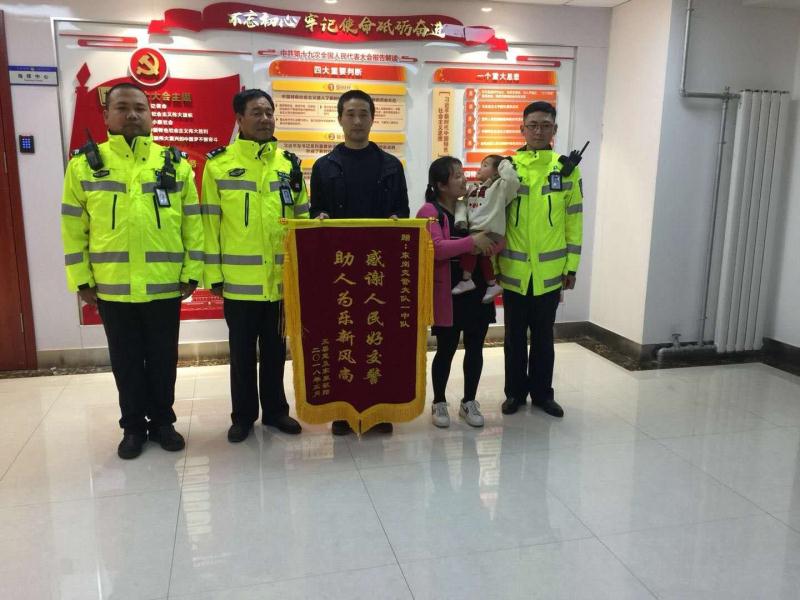 大西北网讯(特约记者 李玉滢 文、图)3月19日下午16:30左右,王树涛夫妇带着一岁多的孩子,将一面印有“感谢人民好交警、助人为乐新风尚”字样的锦旗送到了东岗交警大队,向一周前帮助他们抢救孩子生命的好交警表达谢意。