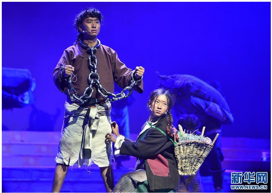 在西藏山南市乃东区,演员在根据真实历史改编的话剧《农奴泪》中演出(3月26日摄)。新华社记者觉果摄