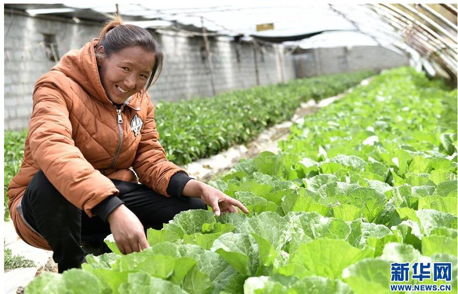 3月27日,克松村种菜能手白玛央宗在自己承包的温室里劳作。新华社记者觉果摄