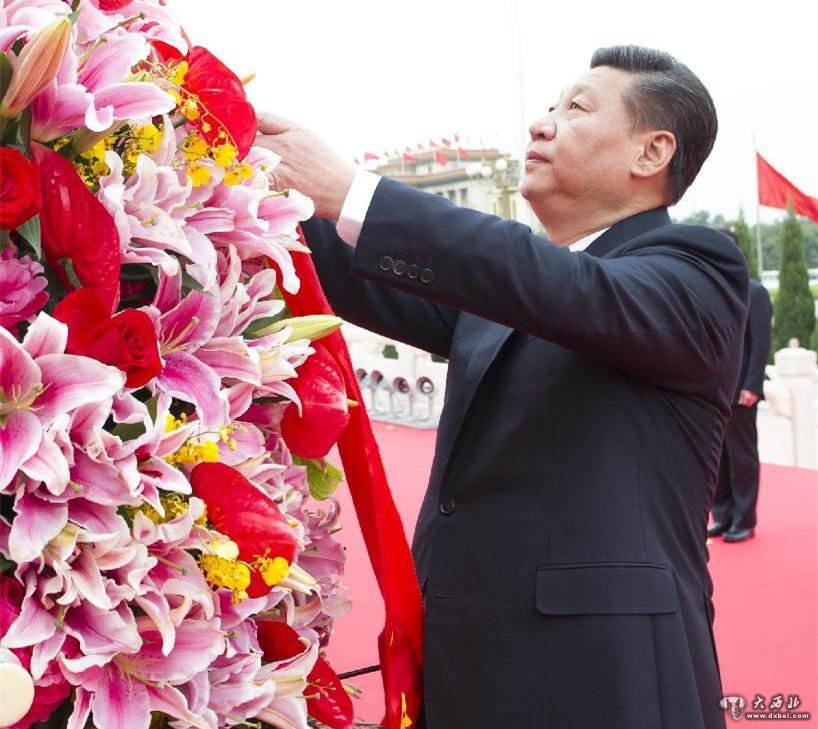 2014年,我国以立法形式设立了烈士纪念日、中国人民抗日战争胜利纪念日和南京大屠杀死难者国家公祭日,以国之名,向烈士致以深深的悼念。图为2014年9月30日,习近平整理花篮上的缎带。新华社记者 黄敬文 摄