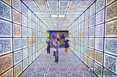 江苏南京,顾客被二维码隧道吸引。苏阳摄光明图片/视觉中国