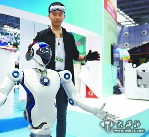 在全国大众创业万众创新活动周北京会场主题展上,工作人员在展示一款仿生机器人。新华社发