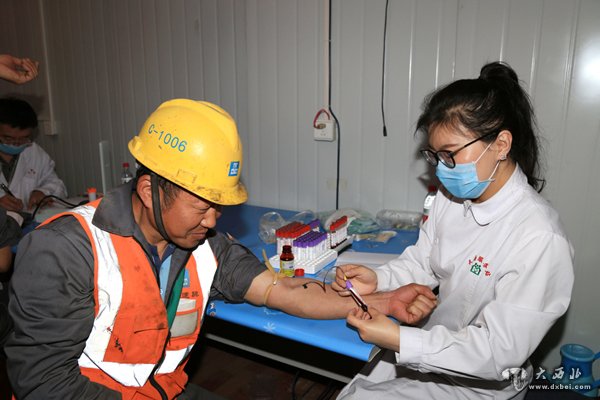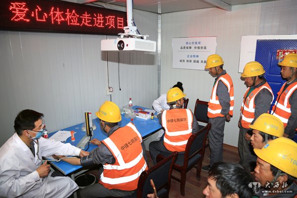 中建七局建装公司盛达金城广场项目部组织“关爱一线民工健康”的免费体检活动。 贾笑云 摄