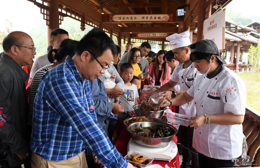 4月19日,在广西南宁市青秀区南阳镇施厚村古岳坡,游客在购买特色小吃。