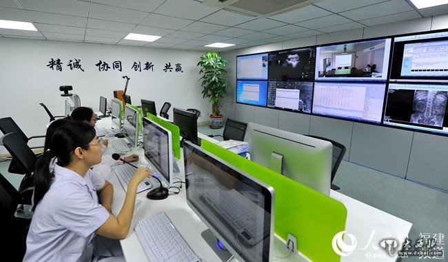 福州市一医院远程诊室内,医疗专家与基层卫生服务中心医生会诊。郑帅摄