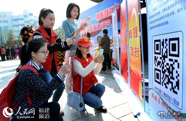 福州市民通过扫二维码了解志愿服务项目,争当志愿者。叶义斌摄