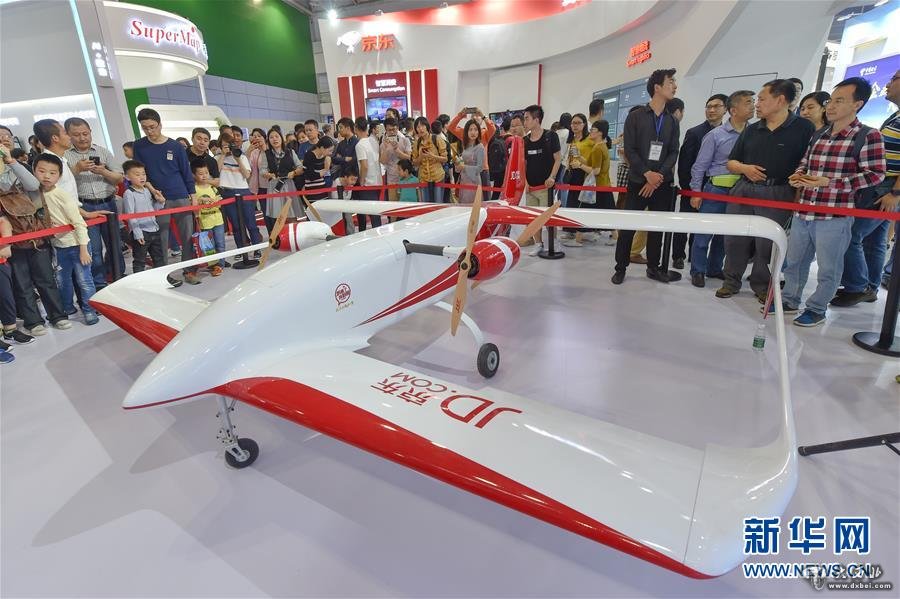 4月22日,观众在首届数字中国建设成果展览会上参观京东展位。