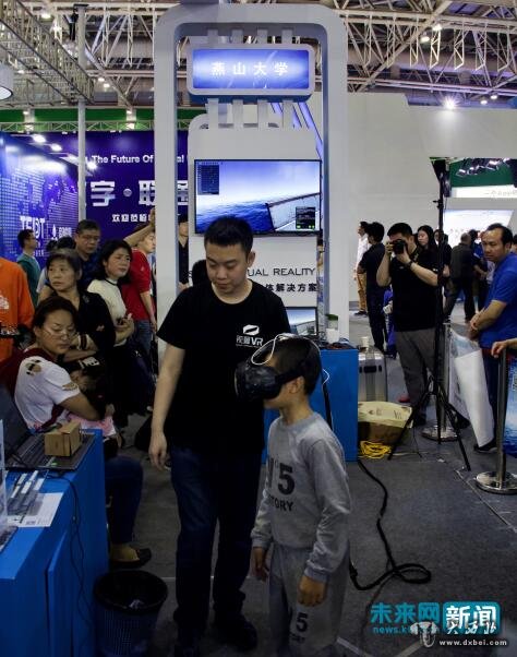 图为首届数字中国建设峰会展览会上,孩子体验自主研发的虚拟现实系统。未来网记者巩帅摄