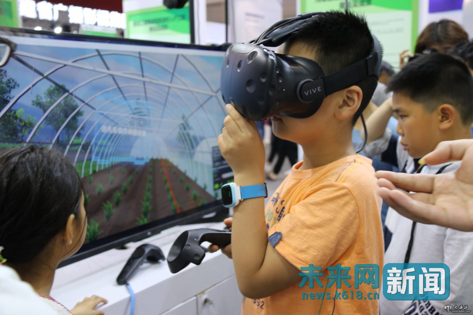 首届数字中国建设展览会现场,学生借VR体验田间实验。未来网记者杨佩颖摄