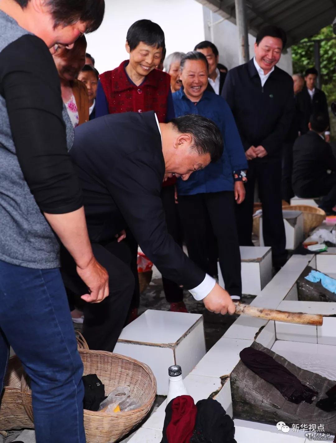总书记接过棒槌捶打衣服的动作,很接地气,引来乡亲们一片掌声。其实,总书记过去在调研考察时,这样接地气的暖心举动还有不少。