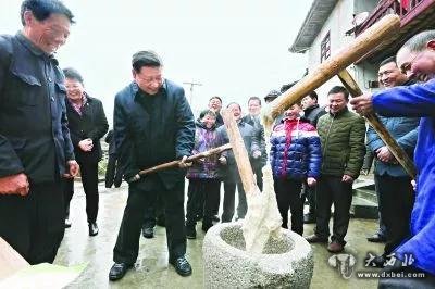 2016年2月1日至3日,习近平总书记来到江西看望慰问广大干部群众和驻赣部队。在井冈山,习近平乘车沿着山路辗转来到黄洋界脚下的茅坪乡神山村,红军烈士后代左秀发一家正在准备年货。总书记来到他家门前,拿起木槌,同村民一起打糍粑。看到左家加工竹制工艺品,养娃娃鱼,听说年后要改造房子,总书记十分高兴,希望一家人早日住上新房,生活越来越好。他叮嘱老人的孙子好好学习。