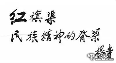杨贵题写的“红旗渠,民族精神的脊梁”。资料图