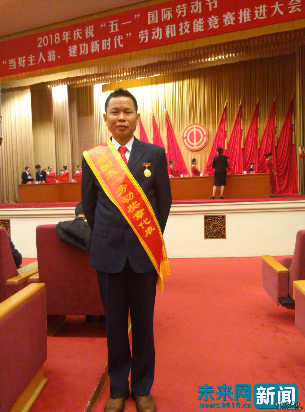 谭文波在2018年劳动节表彰活动现场留念。(受访者供图)