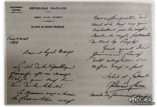 法兰斯共和国是所有自由之友的避难所。暴政把您放逐,自由的法兰西向您、向所有为神圣事业和各国人民的友好事业而斗争的人们敞开着大门。法国政府的每一代表都应当以这种精神来理解自己的职责。