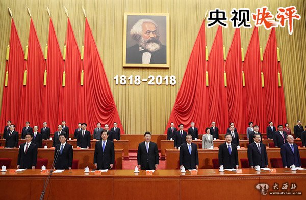5月4日,纪念马克思诞辰200周年大会在人民大会堂举行。中共中央总书记、国家主席、中央军委主席习近平出席大会并发表重要讲话。总书记强调:历史和人民选择马克思主义是完全正确的,中国共产党把马克思主义写在自己的旗帜上是完全正确的,坚持马克思主义基本原理同中国具体实际相结合、不断推进马克思主义中国化时代化是完全正确的!