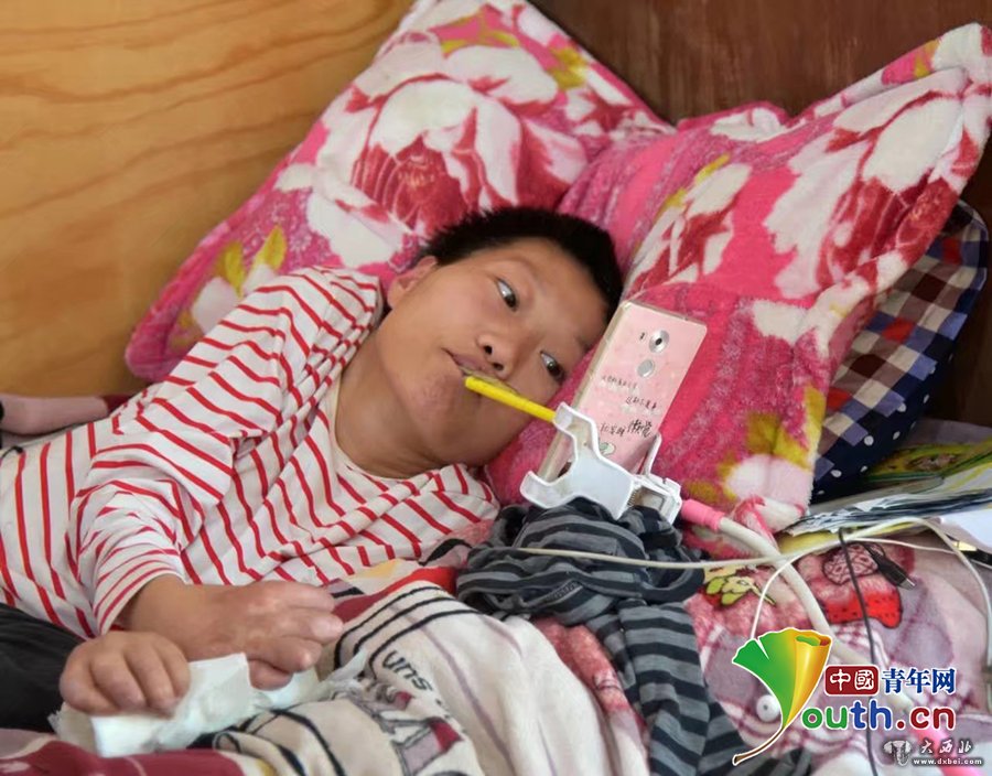 三十出头的李娟体重仅25公斤,全身只有脖子以上的部位能够有限活动。几近“植物人”的她硬是咬着触控笔,在手机上一字一字地输入,艰难地进行微商销售。