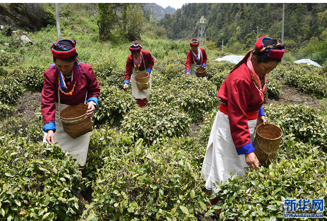 村民在勒乡茶园采茶(5月12日摄)。新华网记者陈琳摄