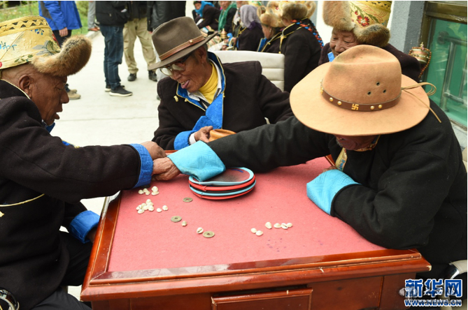 老人们在五保户集中供养服务中心开心地玩牌(5月11日摄)。新华网记者陈琳摄