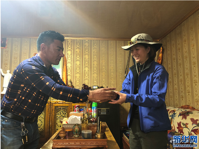 阿里藏族群众为客人敬献酥油茶。新华网雪珍摄
