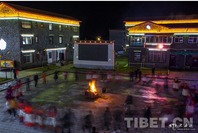 在麻麻生态文明小康示范村的广场上,一群身着门巴族传统服饰的当地群众和来自各地的游客围着篝火跳起了锅庄。“只要天气好,每天晚上8点广场上都会有篝火晚会,游客们也很喜欢参与进来,体验我们当地的特色民族文化”,27岁的德吉措姆正站在自家门口看着广场上热闹的人群。