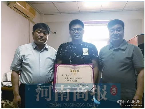 5月18日,“的哥”李波老家河南省林州市委宣传部人员为其颁发“林州好人”荣誉证书