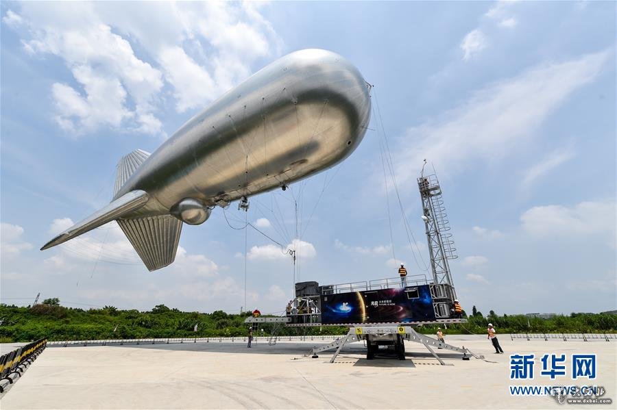在光启东莞生态园的研发基地,集广域互联网信息传输和光学监控于一体的“云端号”准备升空(2016年7月7日摄)。新华社记者毛思倩摄