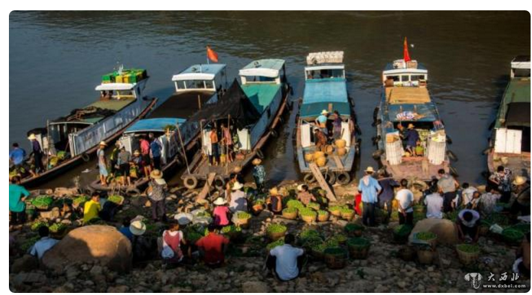 收获季节,村民们挑着李子到河岸边向收购的船只售卖。邓红斌摄