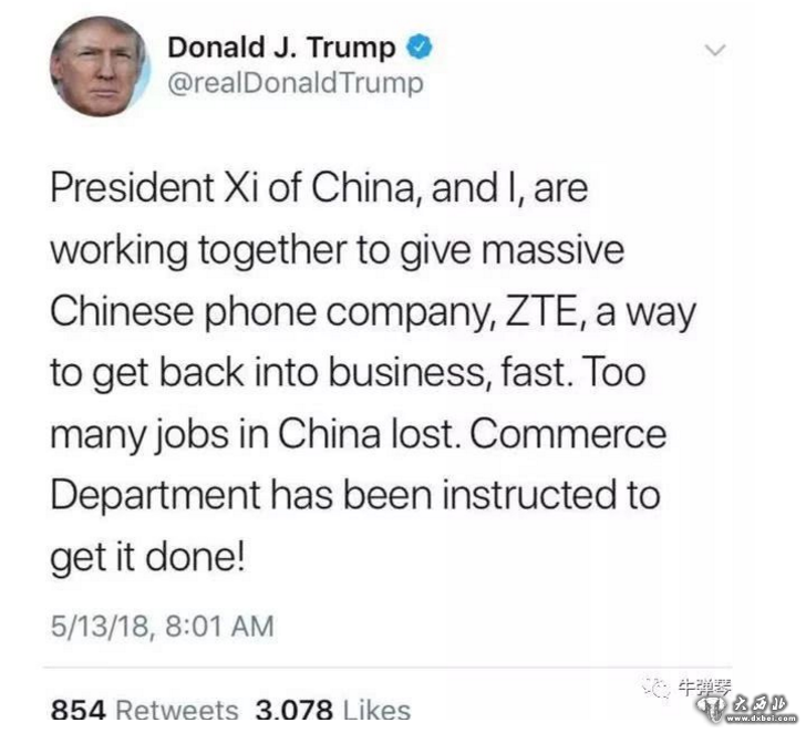 还有外界很关心的中兴事件。在此次华盛顿磋商前,美国总统特朗普在推特上明确表示: