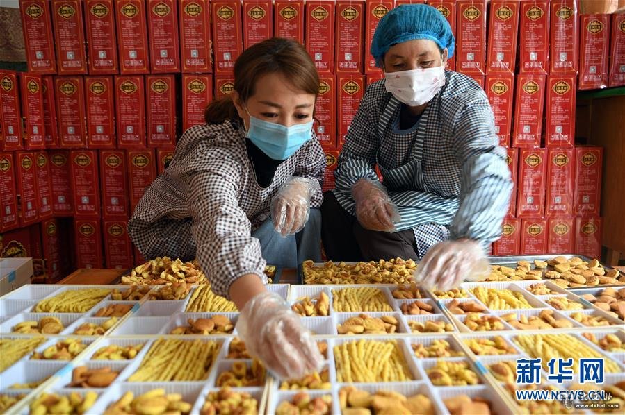 在东乡族自治县高山乡布楞沟村的扶贫车间,马娟(左)和员工一起将油馃馃分装到包装盒(5月24日摄)。1991年出生的马娟是甘肃省临夏回族自治州东乡族自治县锁南镇锁南村人。2014年从兰州一所院校本科毕业后,她考上了西安建筑科技大学的研究生。2017年,当同学们大都在城市找工作的时候,马娟独自返回家乡开始创业。“家乡很贫困,我觉得自己应该回到家乡发展事业。”马娟介绍说,当地的特色食品油馃馃一直很受欢迎,而制作油馃馃又是当地妇女基本都掌握的手艺,马娟决定把家乡的美食推向市场。她召集村里的贫困妇女到作坊加工制作油馃馃,并制定加工标准,自己动手进行包装设计、产品推广,从网店搭建到实体销售,每个细节马娟都亲手完成。功夫不负有心人,自今年1月份上线销售以来,马娟打造的东乡油馃馃供不应求。经过几个月的运营,马娟的创业项目得到了肯定,她被当地组织部门评为巾帼创业能人。为了帮助马娟扩大创业规模,同时带动贫困妇女脱贫,当地政府把一处位于东乡族自治县高山乡布楞沟村的企业援建扶贫车间交由马娟运营和管理。如今,布楞沟村50多户贫困家庭的妇女在家门口的扶贫车间制作油馃馃,有了一份稳定的收入。新华社记者范培珅摄