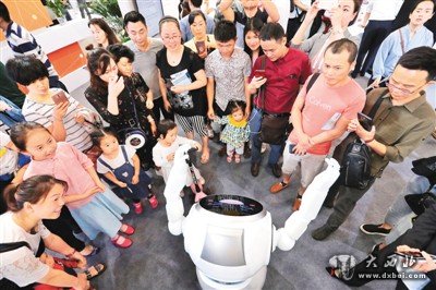 2018中国国际大数据产业博览会上跳舞的小i机器人。