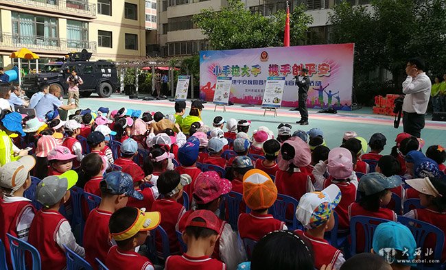 大西北网讯 (记者王志俭特与记者于学成) 为庆祝"六一"国际儿童节,深化“平安校园”创建活动。5月29日,兰州铁路公安处联合兰州市和政路幼儿园、开展了“大手拉小手·携手创平安”的警民共建平安校园活动。与此同时,兰铁公安处还向和政路幼儿园的小朋友们.赠送了彩笔、笔记本、笔袋等学习用具,以此向孩子们表达节日的亲切慰问。