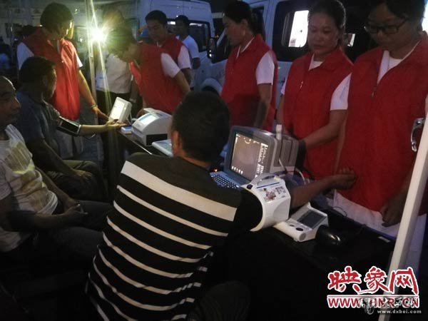 在马湾移民新村文化广场上映象网记者看到,广场上停着12台健康体检车,体检车上配备有全自动生化分析仪、B超、心电图机等设备,可以开展7大项、49小项健康体检服务。