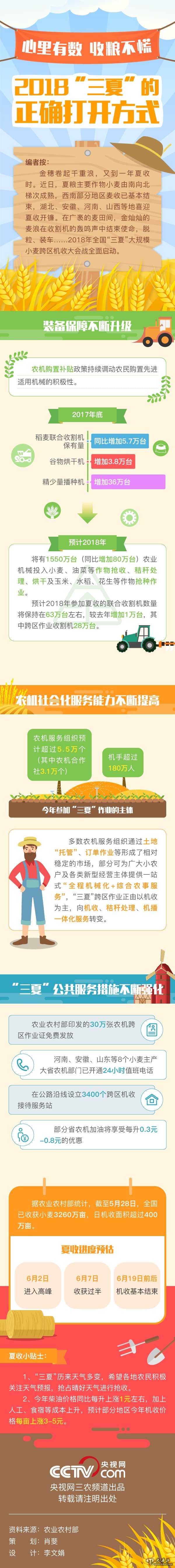 央视网消息:金穗卷起千重浪,又到一年夏收时。近日,夏粮主要作物小麦由南向北梯次成熟,西南部分地区麦收已基本结束,湖北、安徽、河南、山西等地喜迎夏收开镰。在广袤的麦田间,金灿灿的麦浪在收割机的轰鸣声中结束使命,脱粒、装车……2018年全国“三夏”大规模小麦跨区机收大会战全面启动。