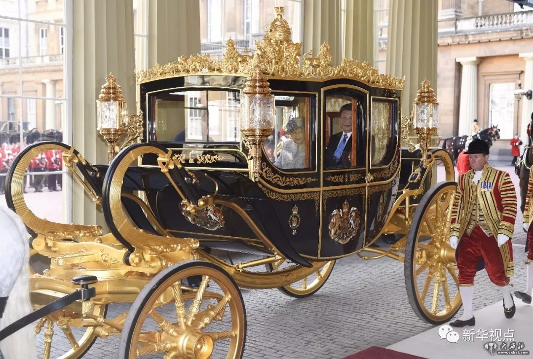 欢迎仪式结束后,习近平主席夫妇在女王夫妇的陪同下,乘坐女王的皇家马车前往白金汉宫下榻。
