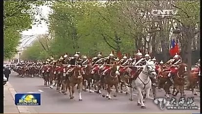 随后,两国元首共同乘车,前往爱丽舍宫举行会谈。法方出动了146名骑兵护卫,一路上,中法两国国旗迎风飘扬,清脆的马蹄声起伏回荡。