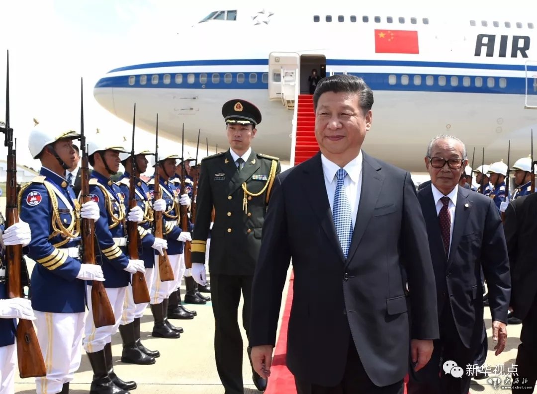 2016年10月,习近平主席出访柬埔寨,当他乘坐的专机抵达金边国际机场时,舷梯下,24名礼兵分列红毯两侧,白色头盔,深蓝制服,庄严站立。