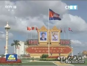 柬埔寨王宫外广场上,并排矗立着习近平主席和柬埔寨国王西哈莫尼的巨幅画像,画像下方“中柬友谊万古长青”的标语格外醒目。