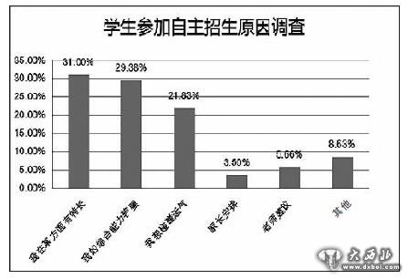 调查显示,自身综合能力较强以及某方面有特长,是促使学生参加自主招生的主要原因,这两部分学生占比达到60.38%。
