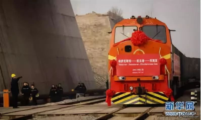 2017年2月5日,一辆哈萨克斯坦火车驶入中哈连云港物流中转基地。新华社记者 李响 摄