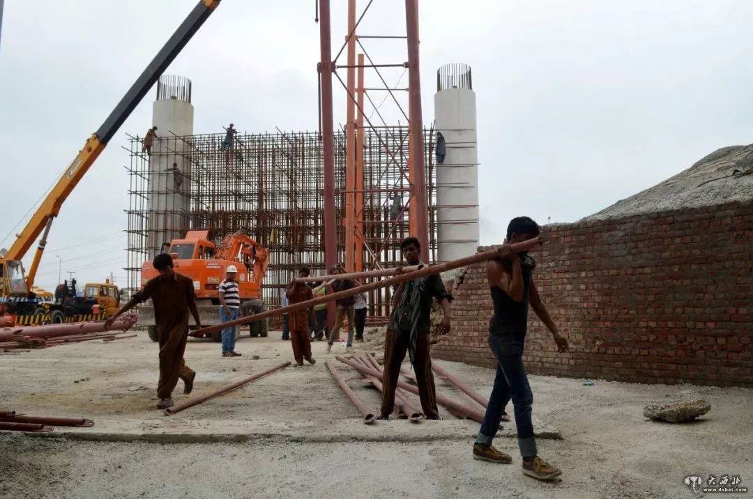 2016年7月17日,拉合尔轨道交通橙线项目是中巴经济走廊的早期示范项目,巴基斯坦工人正在工地上工作。 新华社发