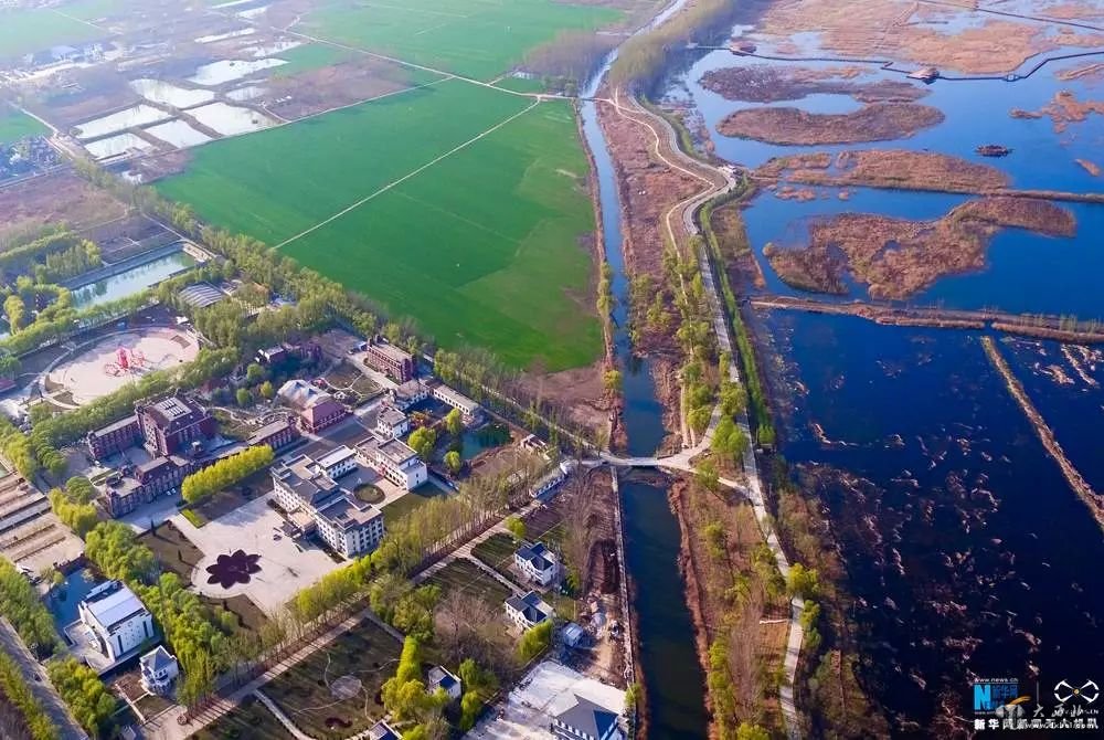航拍白洋淀淀里村庄。新华网 张润贞 摄